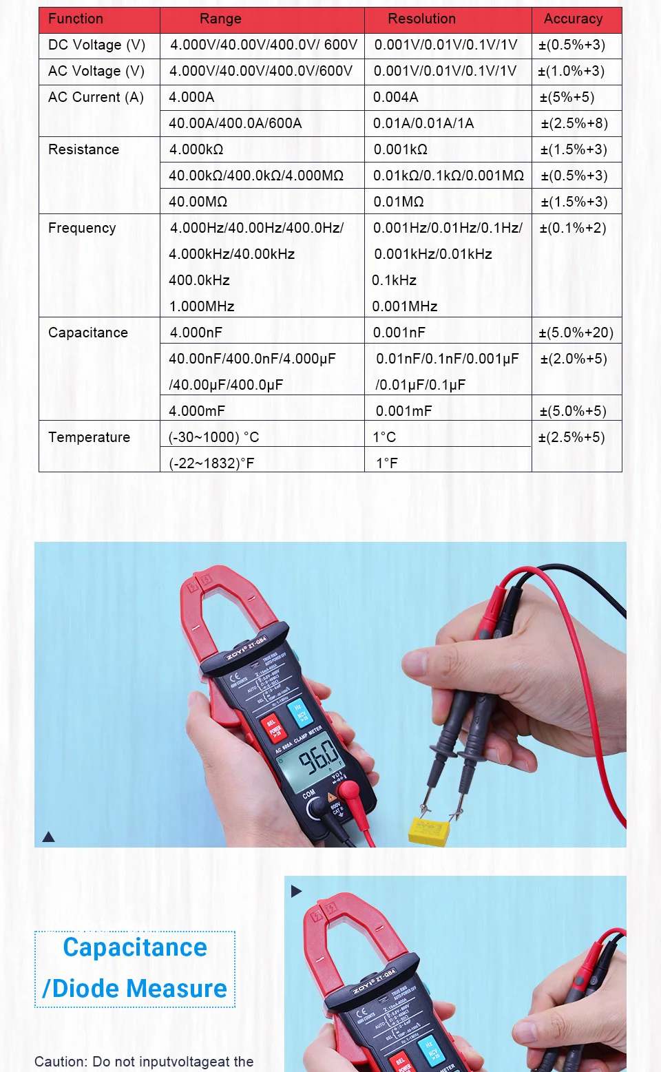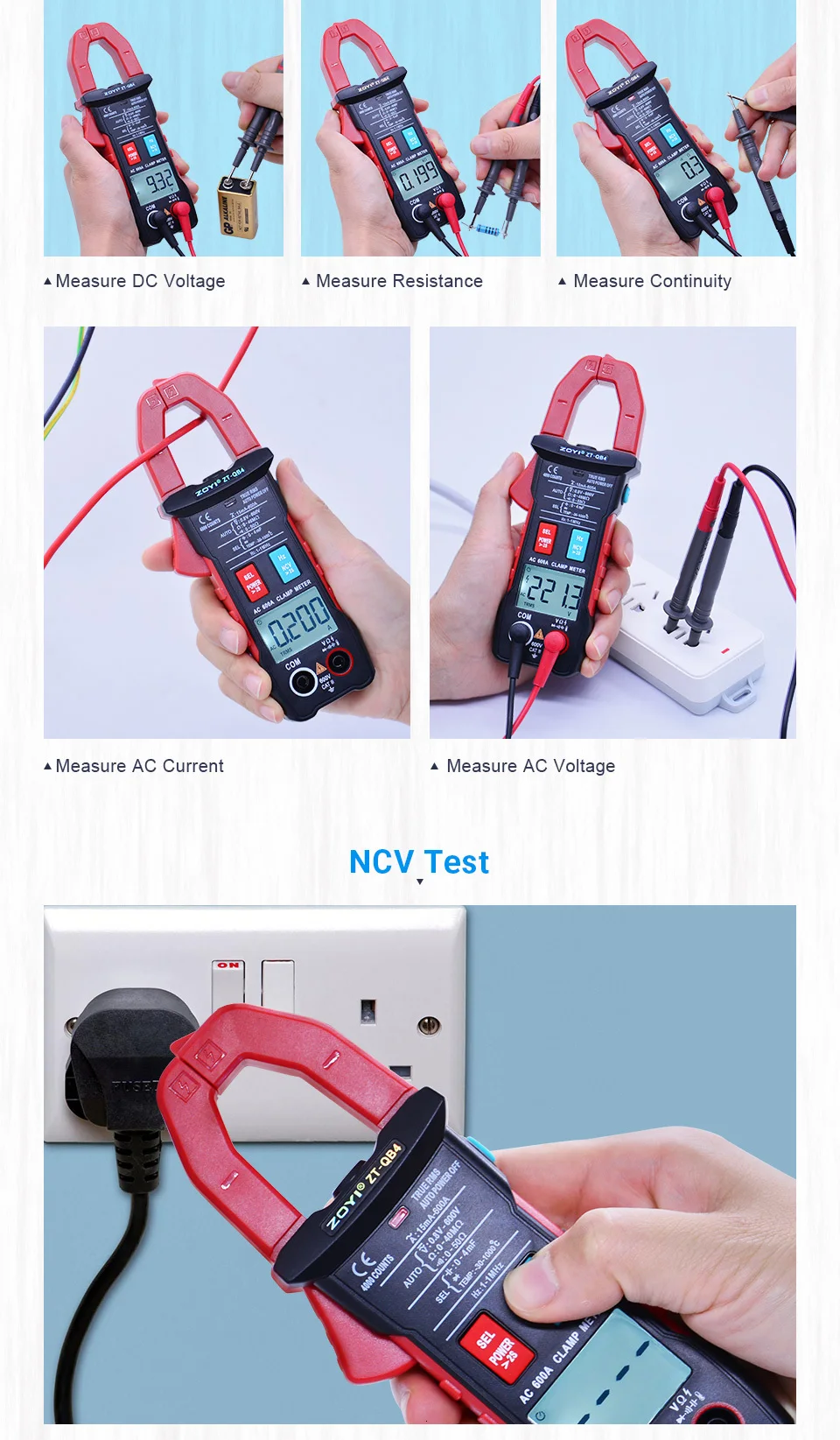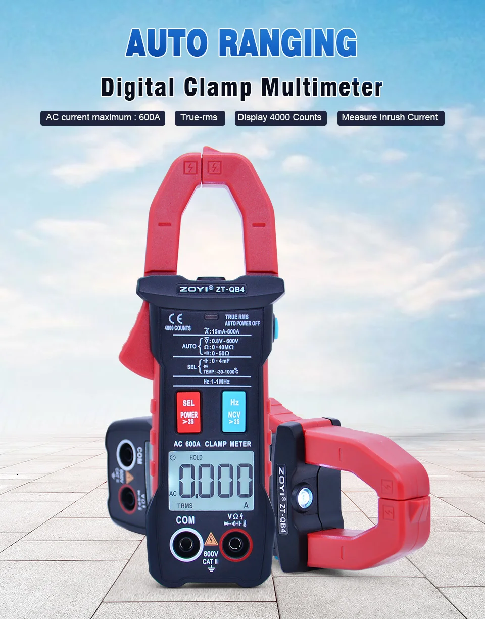 ZOYI цифровой клещи ZT-QB4 4000 Счетный мультиметр Вольтметр Амперметр переменного тока Сопротивление Частота Емкость тестер температуры
