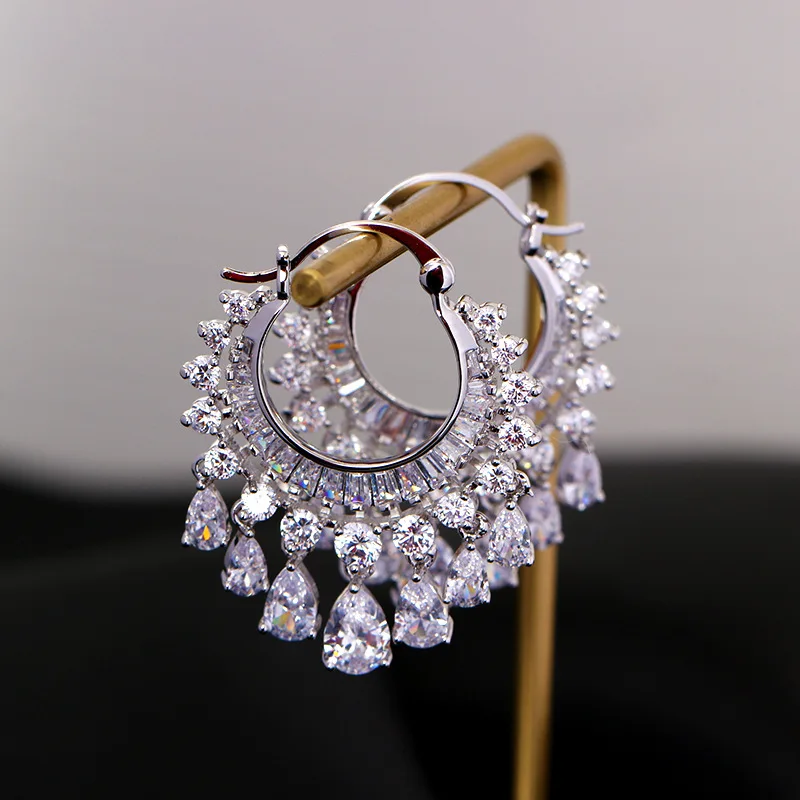 1pair Clear CZ Fully-jewelled Earring Romantic Earrings Hoop Dangle Earring Fashion Jewelry