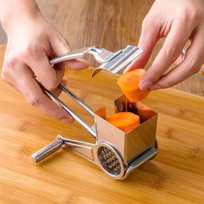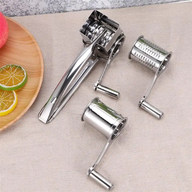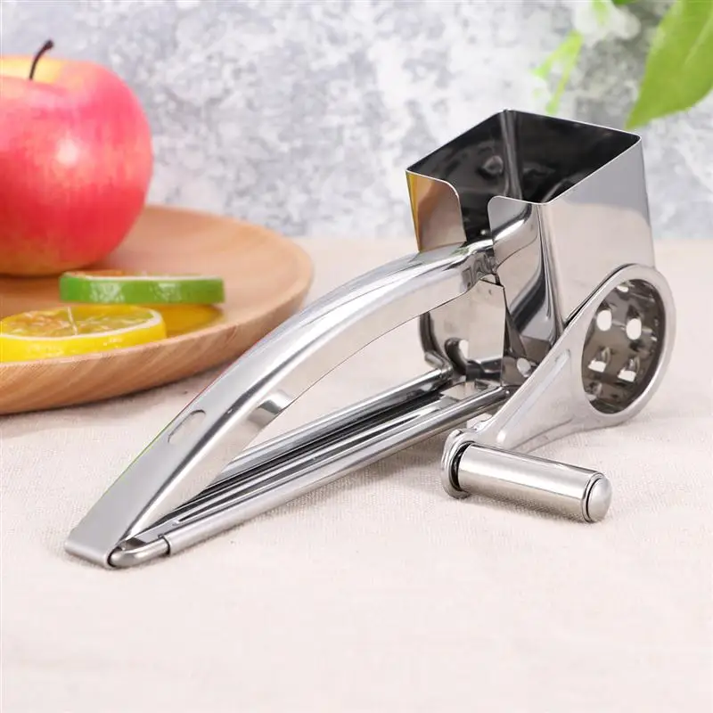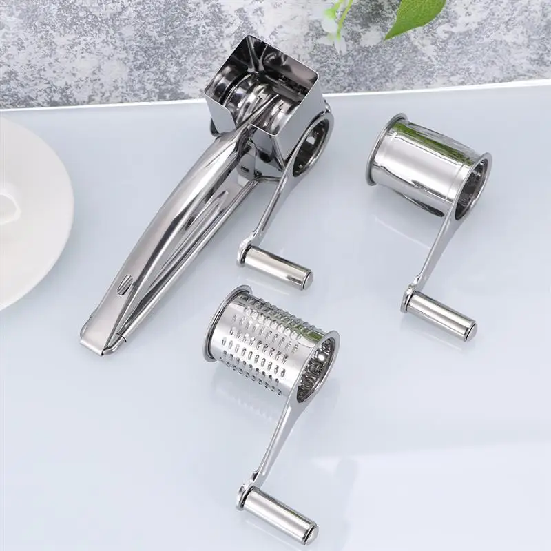 Этот набор терки вращающийся сырный изготовлен из нержавеющей стали. Терка для сыра с 2 разными вращающимися барабанами и острыми лезвиями отлично подходит для измельчения твердого сыра, шоколада, орехов, фруктов, моркови, картофеля, редиса, капусты, сухарей, печенья, тыквы и многое другое.