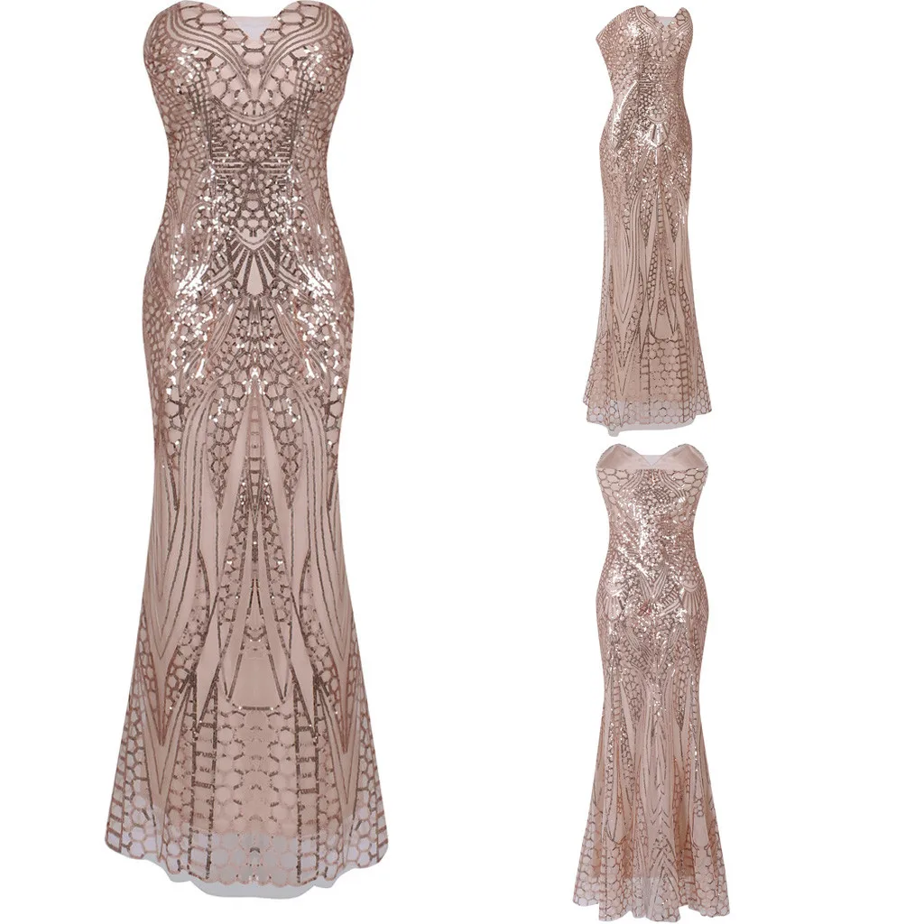Для женщин с открытыми плечами, длинное, тонкое, с блестками для банкета пикантные вечерние платья