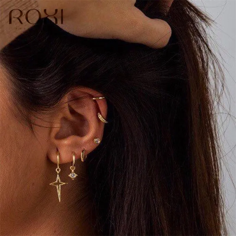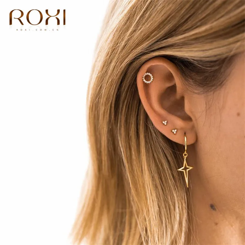 ROXI минималистичные круглые серьги, геометрическая подвеска в виде полого креста, висячие серьги для женщин, серьги из стерлингового серебра 925 пробы