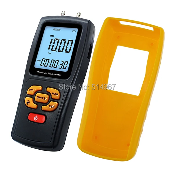 ЭтоЦифровой манометрИдеальное устройство для измерения перепада давления. Он имеет 11 выбираемых единиц давления: бар, mbar, kPa, kgf/cm2, mmHg, cmH2O, Ozf/in2, psi, inHg, inH2O, ftH2O, подходит для промышленных и бытовых нужд. Применение: Широко используется для измерения давления вентиляторов, сопротивления, скорости ветра, давления печи, перепада давления фильтра и мониторинга содержания газа в воздухе в процессе сгорания. Особенности:
