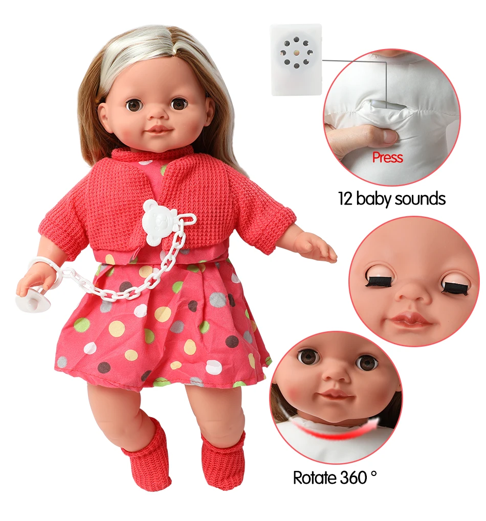 16 дюймов имитация Bebe reborn doll звук длинные волосы 40 5 см Реалистичная набивка хлопок