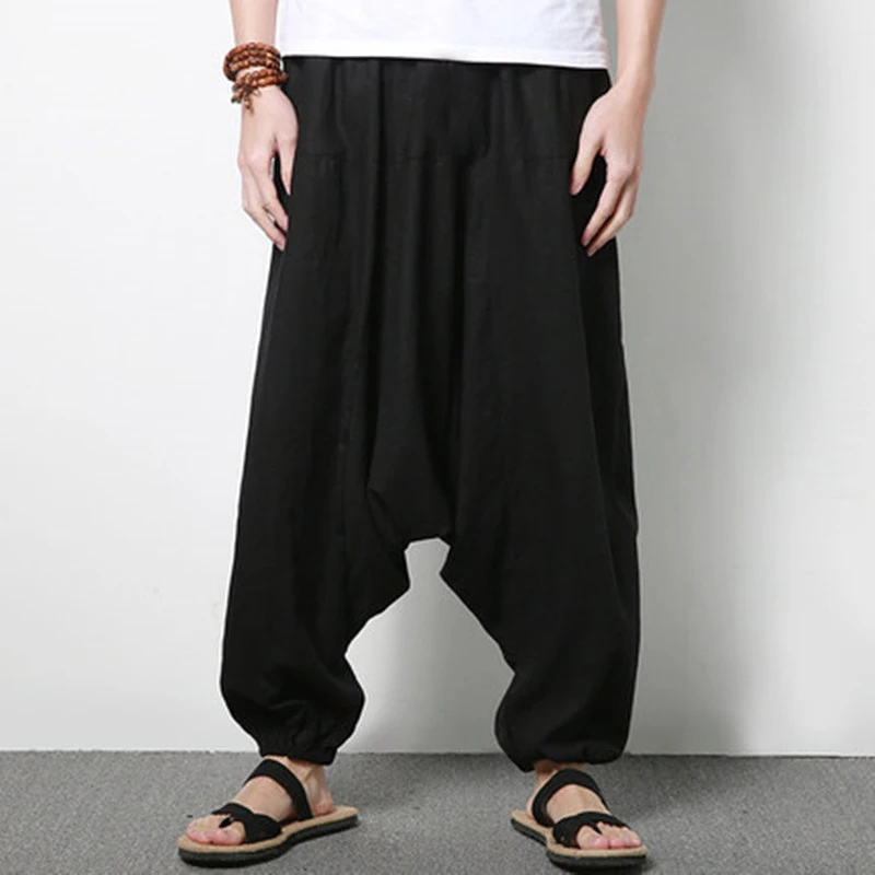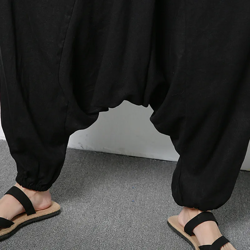 Описание товара: женские мужские свободные широкие брюки, повседневные хлопковые льняные шаровары с заниженным шаговым швом