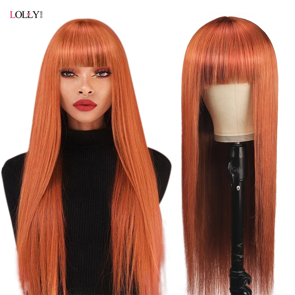 Имбирный оранжевый прямой парик с челкой, парик Омбре, малазийский аппарат, парики из человеческих волос для черных женщин, дешевый 99J полный машинный парик с челкой