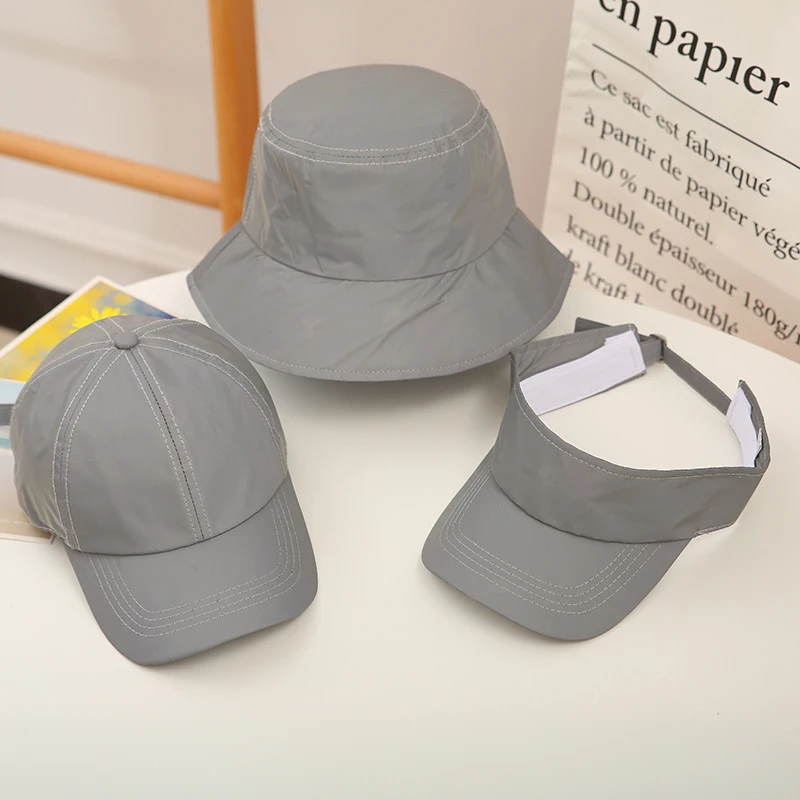 Высокая видимость ведро шляпа серая Защитная шляпа ночью Светоотражающая Кепка Пешие прогулки Велоспорт Бег Светоотражающая бейсболка
